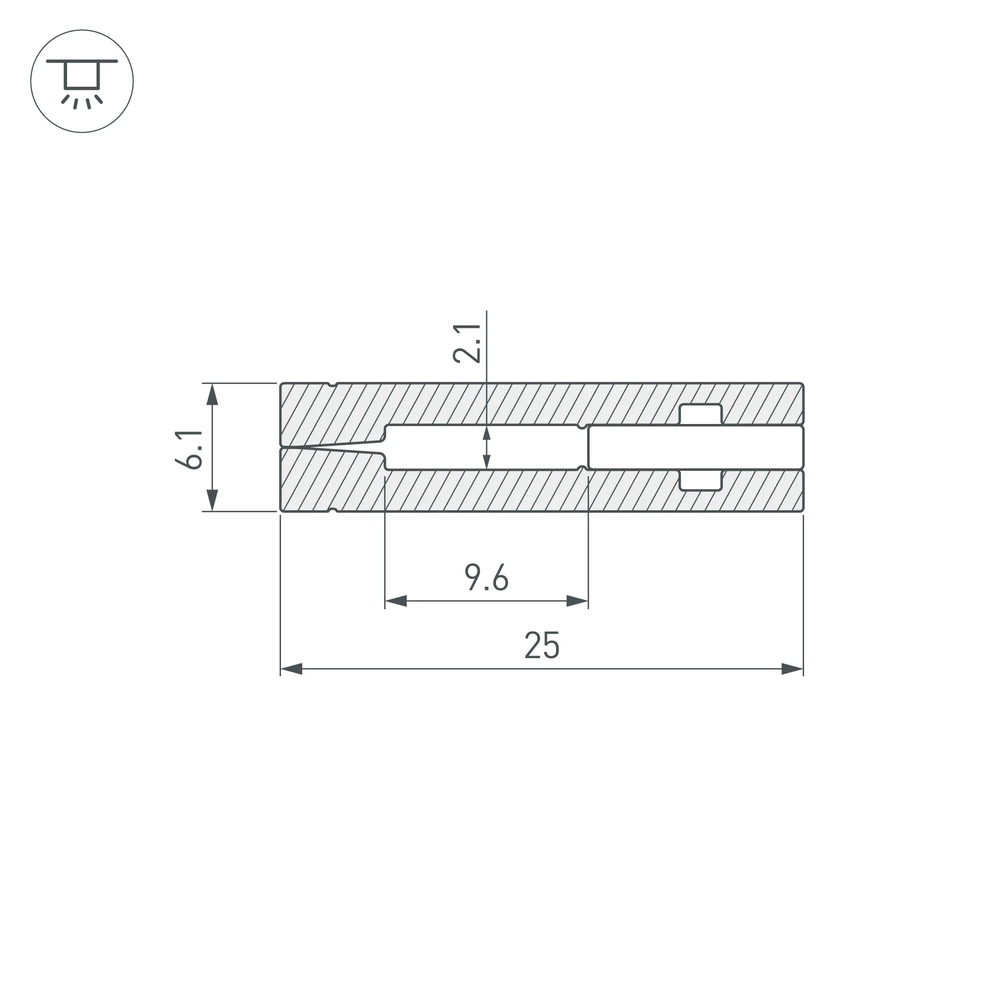 Габаритные размеры (L×W×H): 2000х25х6,1 мм. Ширина площадки для ленты 9 мм. Аксессуары приобретаются отдельно.