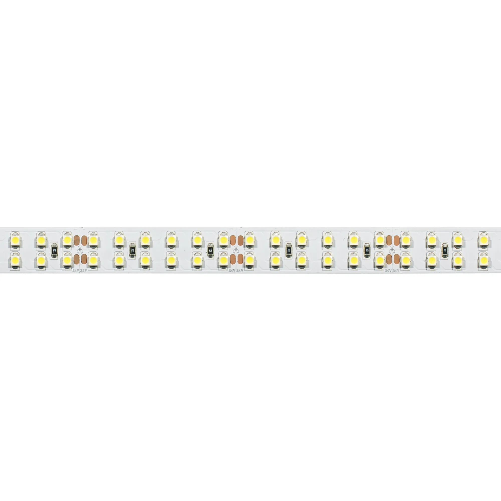 Гибкая лента LUX, 2 ряда, светодиоды smd 3528, 240шт/м (1200шт на 5м), белая плата 15мм, скотч 3М. Цвет ХОЛОДНЫЙ 7700-9600K. Питание 24V, мощность 19.2 Вт/м (96 Вт на 5м), угол 120°, цветопередача CRI>85. Размеры 5000х15x2.4мм. Мин.отрезок 50мм, 12шт светодиодов. Пакет 5м. Цена за 1м.