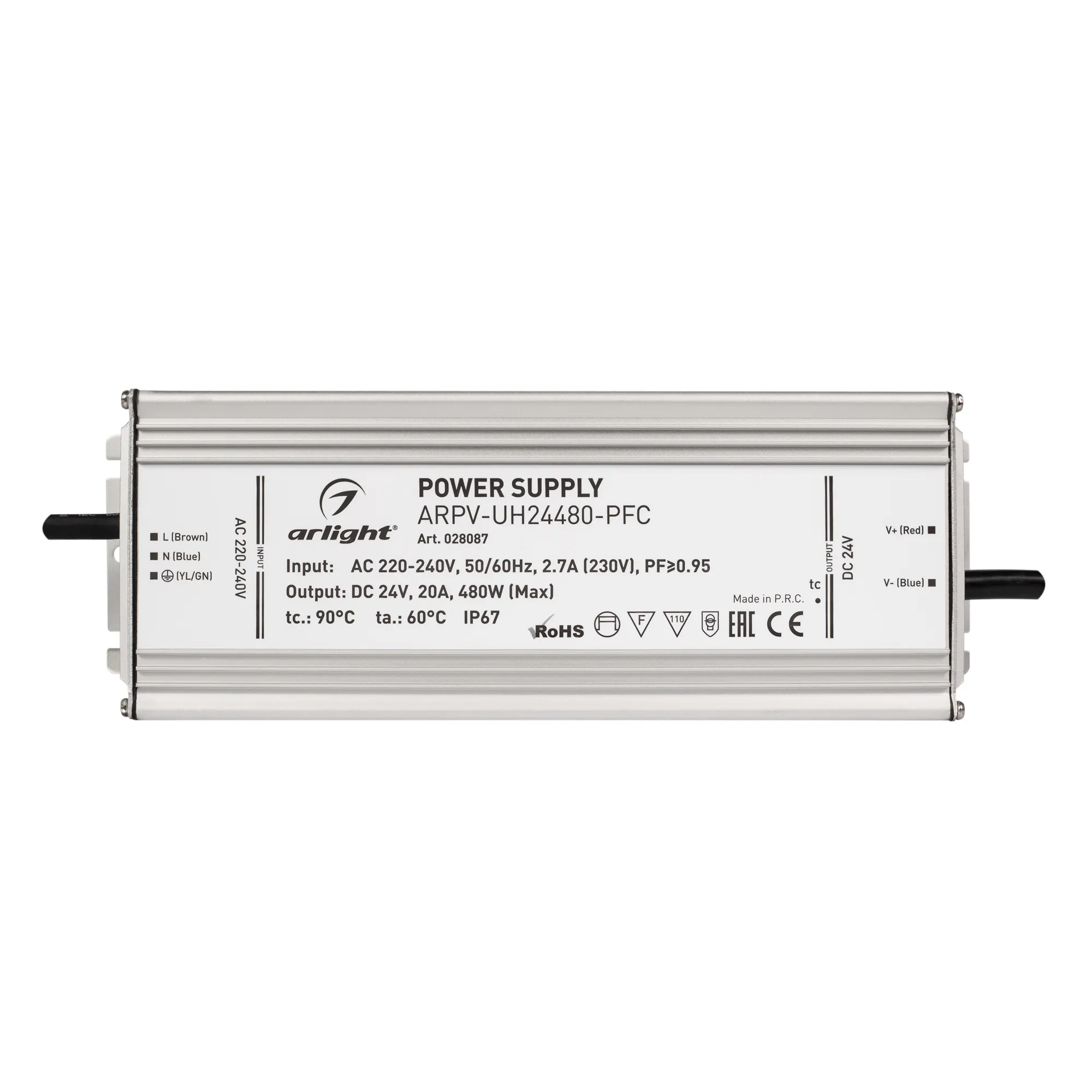 В магазине Arled Market Вы можете купить "Блок питания ARPV-UH24480-PFC (24V, 20A, 480W) (Arlight, IP67 Металл, 7 лет)"