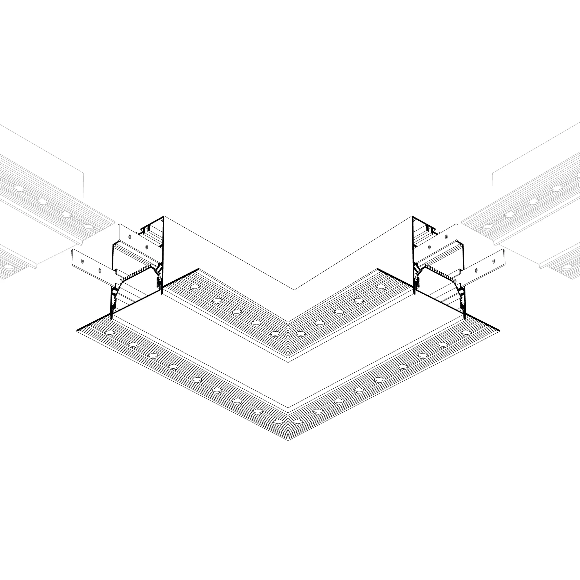 Угол в сборе, для профиля SL-LINIA55-FANTOM. В комплекте угол с экраном, соединители, винты, шестигранный ключ.