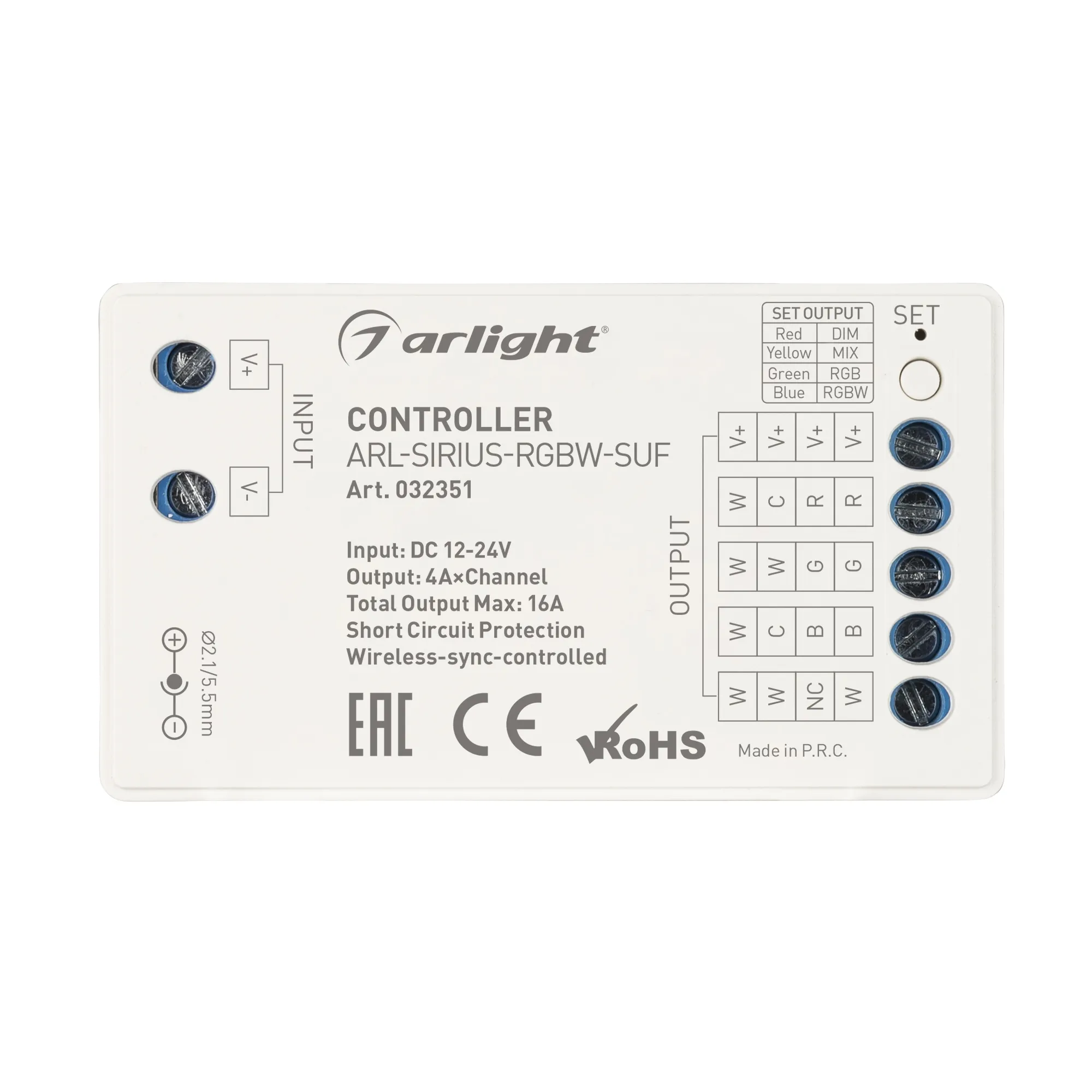 В магазине Arled Market Вы можете купить "Контроллер ARL-SIRIUS-RGBW-SUF (12-24V, 4x4A, 2.4G) (Arlight, IP20 Пластик, 3 года)"