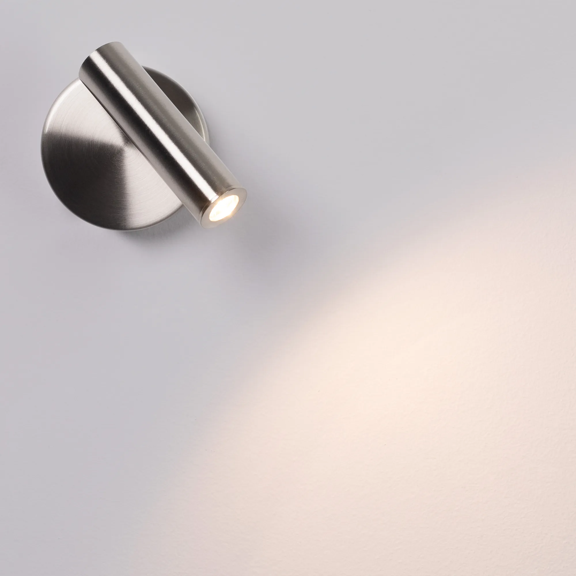 Накладной настенный светильник 3Вт,серебристый алюминиевый корпус. Цвет ТЕПЛЫЙ БЕЛЫЙ 3000K, св.поток 200лм, CRI(Ra)>80, угол 20°. Размер Основание Ф90x31мм, Светоизлучатель Ø30×110 мм. IP20. Питание AC220-240V, 3Вт, встроенный драйвер 2,5-4,5В, 700 мА.