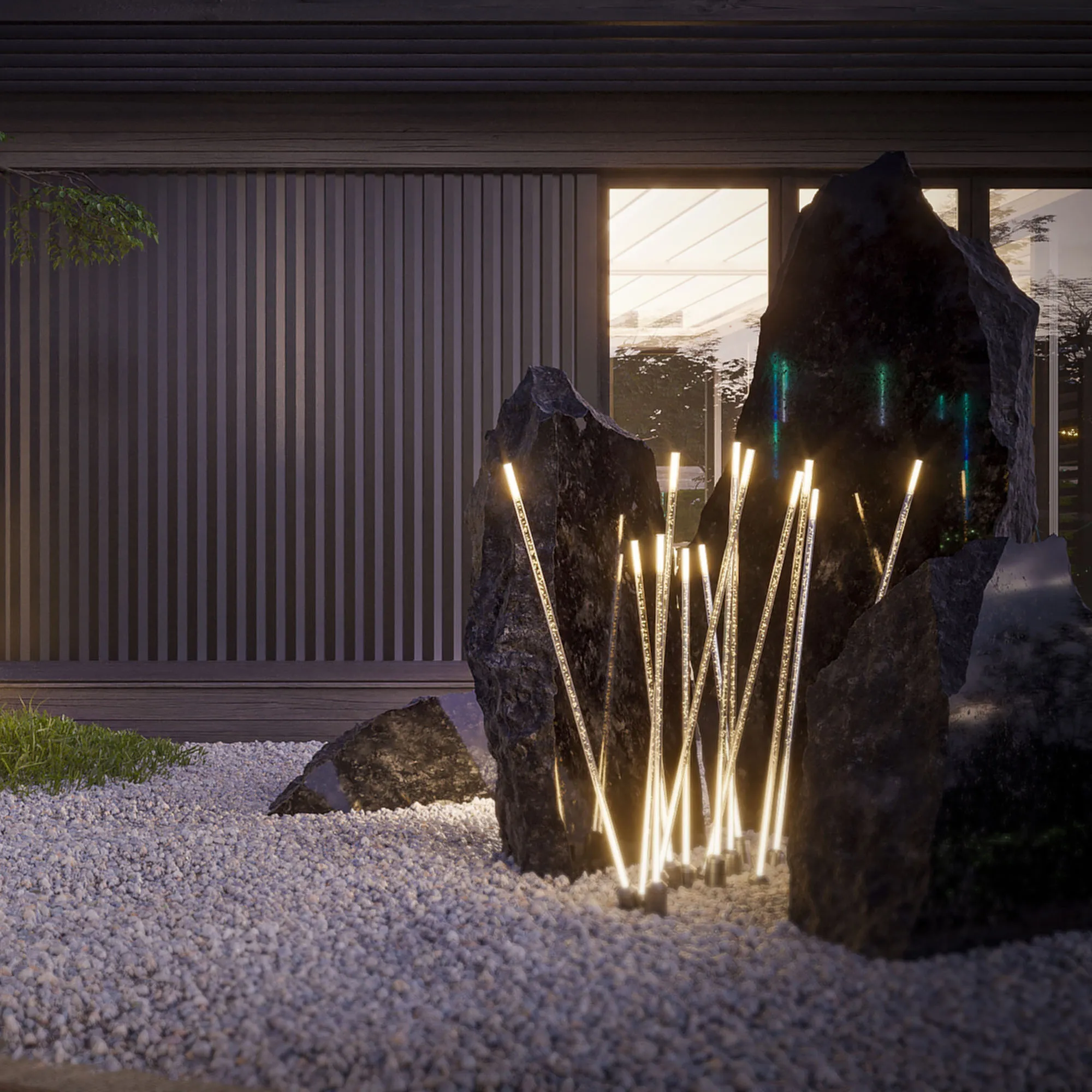 Декоративный ландшафтный светильник. Мощность 3.5 Вт, св. поток 40 лм, 11 лм/Вт, теплый 3000 K, CRI>80, угол 180°, напряжение питания 230 В. Темно-cерый фигурный корпус из алюминия, экран PMMA+PC, степень защиты IP65. Размер: диаметр 15 мм, высота 1000 мм. Монтаж в грунт.
