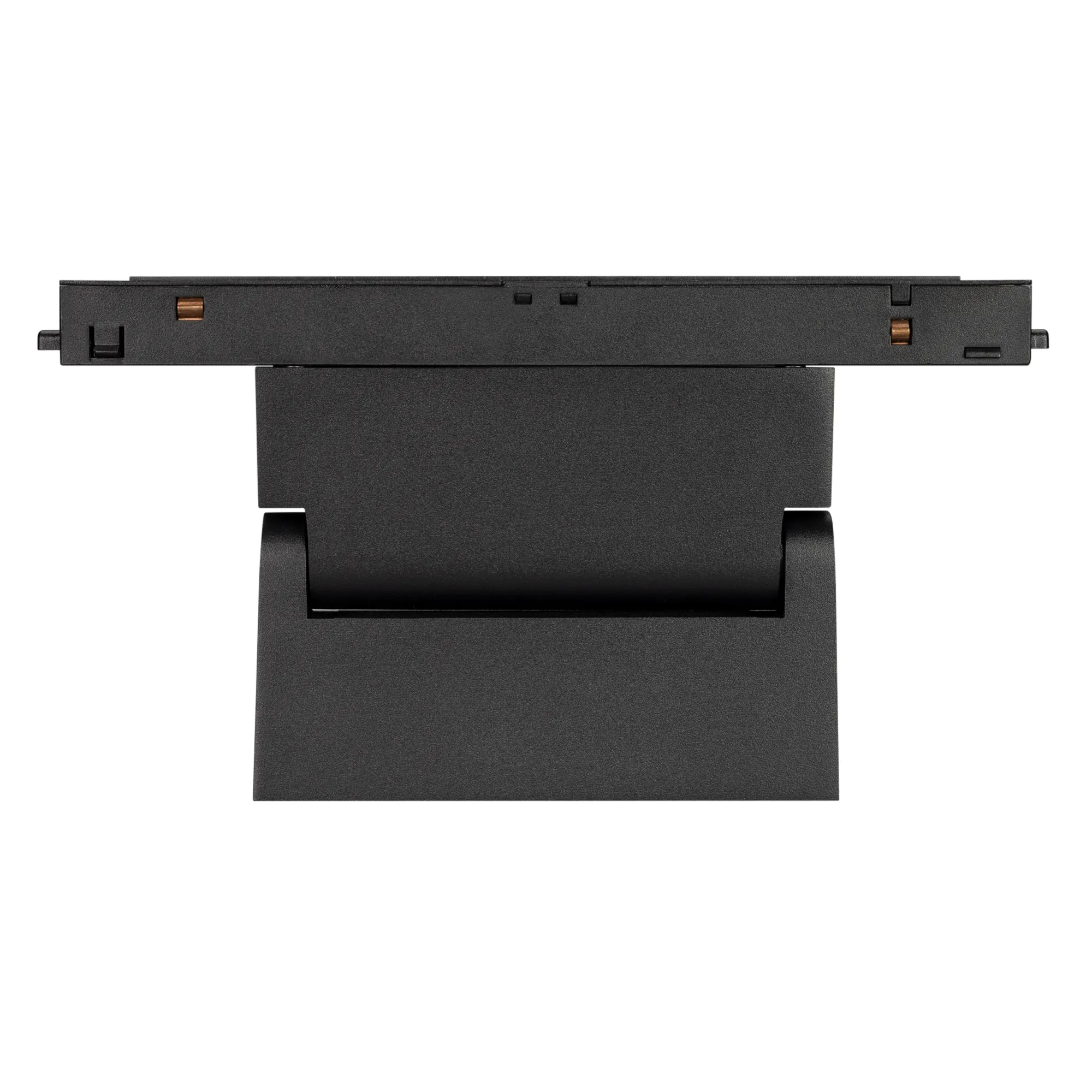 Светильник для магнитных треков MAG-ORIENT шириной 26 мм с управлением DALI. Мощность 6 Вт, св. поток 370 лм, 60 лм/Вт, теплый 3000 K, CRI>90, угол 80°, напряжение питания 48 В. Черный прямоугольный корпус из металл, экран поликарбонат, степень защиты IP20. Размер: длина 195 мм, ширина 23 мм, высота 107 мм. Монтаж на трек MAG-ORIENT, пульсация <1%.