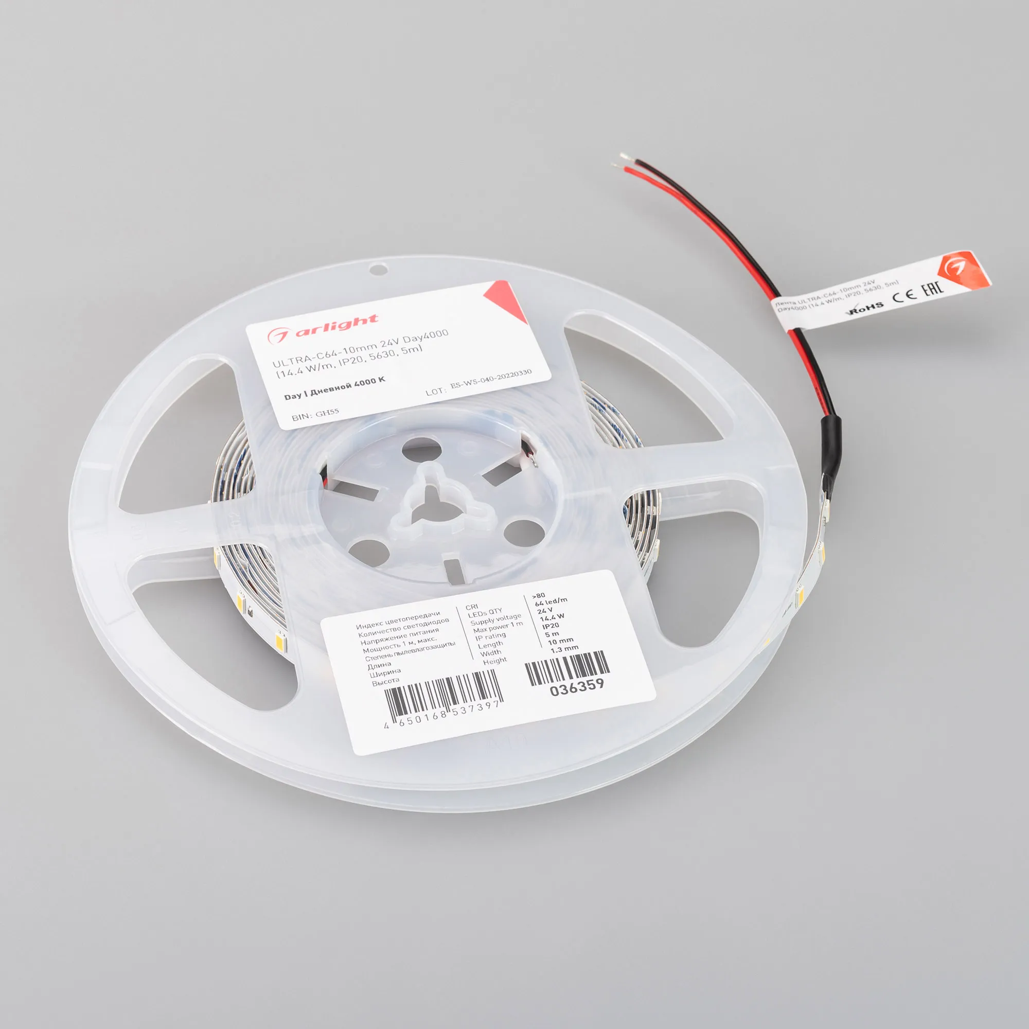 Лента светодиодная ULTRA-C64-10mm 24V Day4000 (14.4 W/m, IP20, 5630, 5m) (Arlight, высок.эфф.160 лм/Вт)