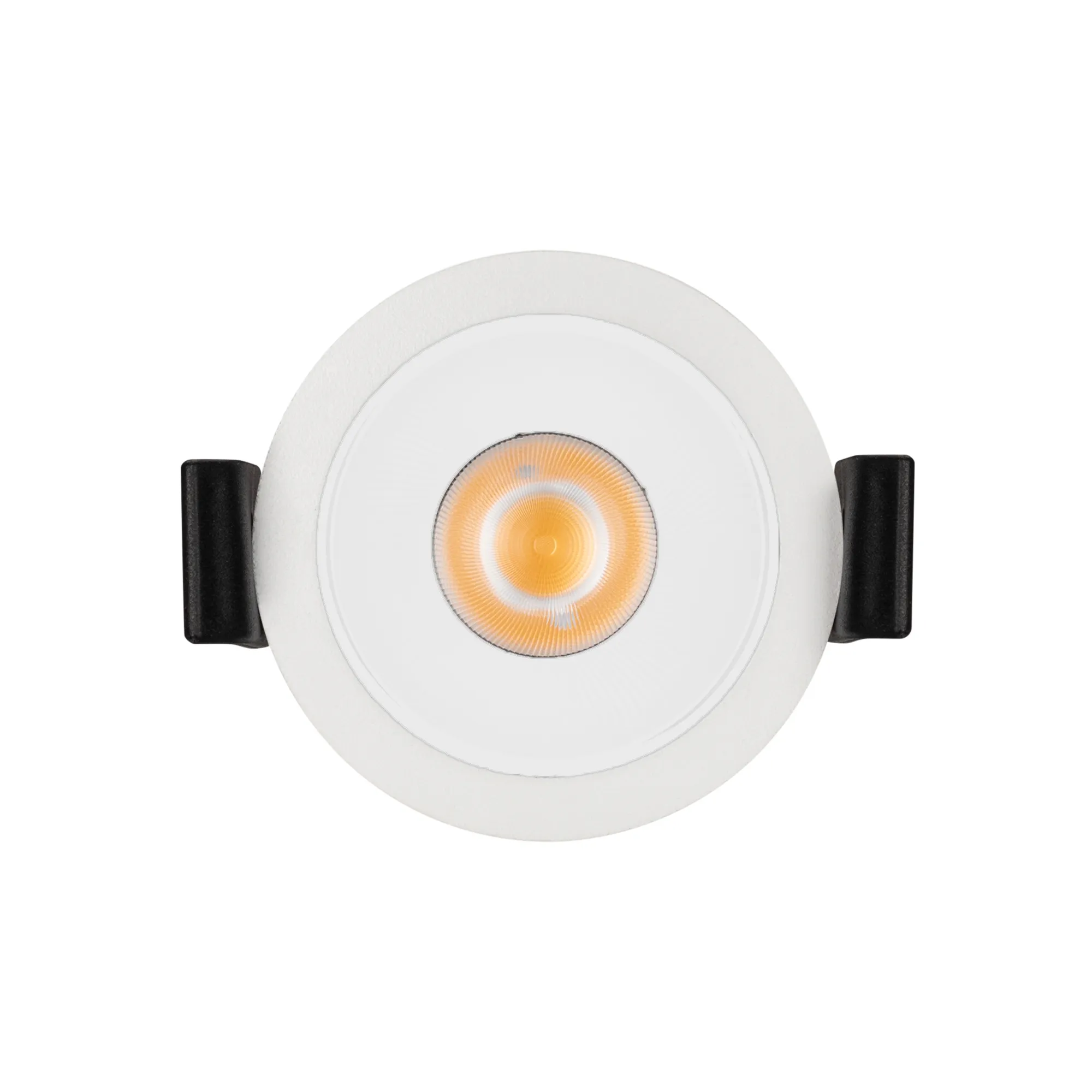 Встраиваемый светильник даунлайт. Мощность 10 Вт, св. поток 865 лм, 87 лм/Вт, теплый 3000 K, CRI>90, UGR<16, угол 35°, напряжение питания 230 В. Белый круглый корпус из алюминия, белый ГЛЯНЦЕВЫЙ отражатель из PMMA, степень защиты IP20. Размер: диаметр 58 мм, высота 68 мм. Монтаж встраиваемый, установочное отверстие: диаметр 52 мм. Драйвер 20-40 В, 250 мА, пульсация <2%.