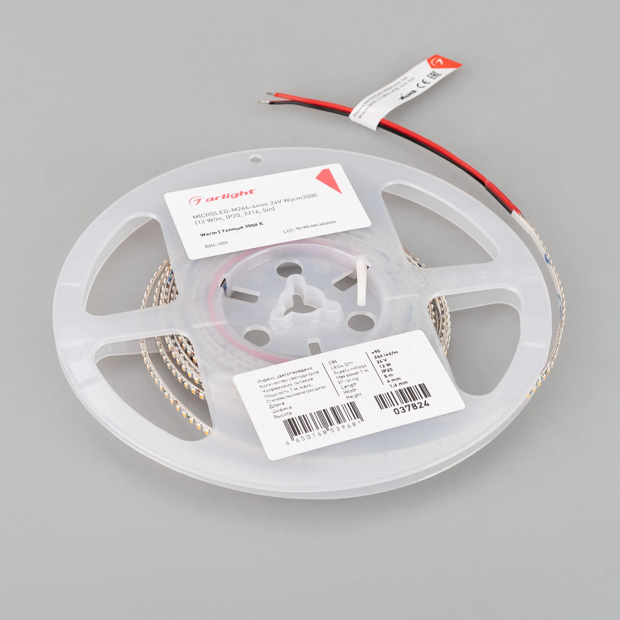 В магазине Arled Market Вы можете купить "Лента светодиодная MICROLED-M266-4mm 24V Warm3000 (12 W/m, IP20, 2216, 5m) (Arlight, узкая)"