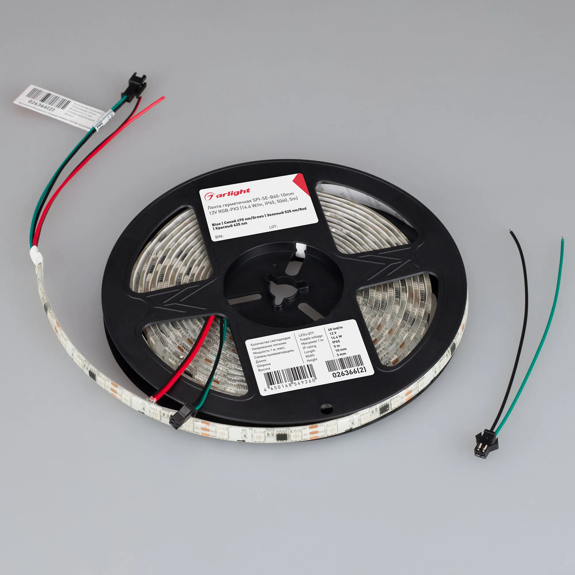 В магазине Arled Market Вы можете купить "Лента светодиодная герметичная SPI-SE-B60-10mm 12V RGB-PX3 (14.4 W/m, IP65, 5060, 5m) (Arlight, бегущий огонь)"