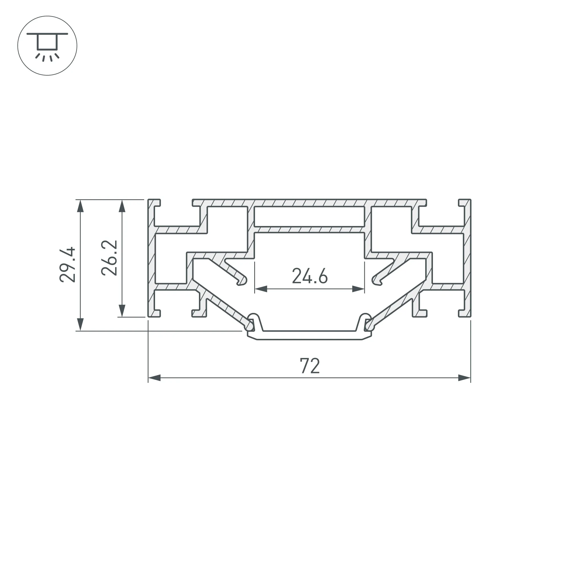 Алюминиевый профиль для натяжных потолков (центральная линия). Решение 2-в-1 - каркас для крепления натяжного потолка и профиль для установки светодиодной ленты. Для дизайнерских решений «линии света» в натяжных потолках. Монтируется к потолку накладным способом. Ширина площадки для ленты 24,6 мм. Длина 2000 мм. Цена за 1 м.