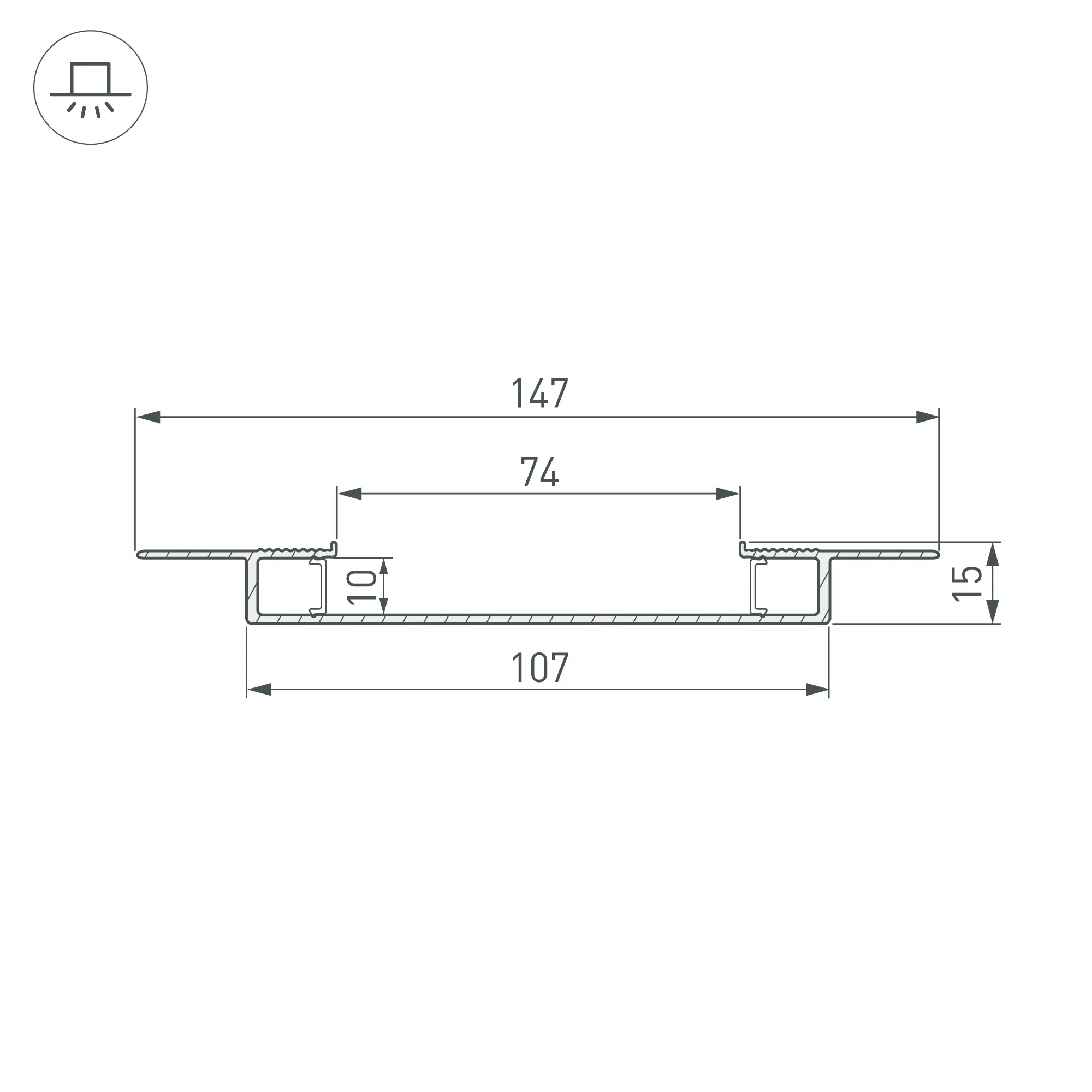 Алюминиевый встраиваемый профиль для светодиодных лент и линеек. Цвет - белый RAL9003 (порошковая окраска). Габаритные размеры (L×W×H): 2000х147х15 мм. Ширина площадки для ленты 10 мм. Экраны, заглушки и другие аксессуары приобретаются отдельно. Цена за 1 метр.