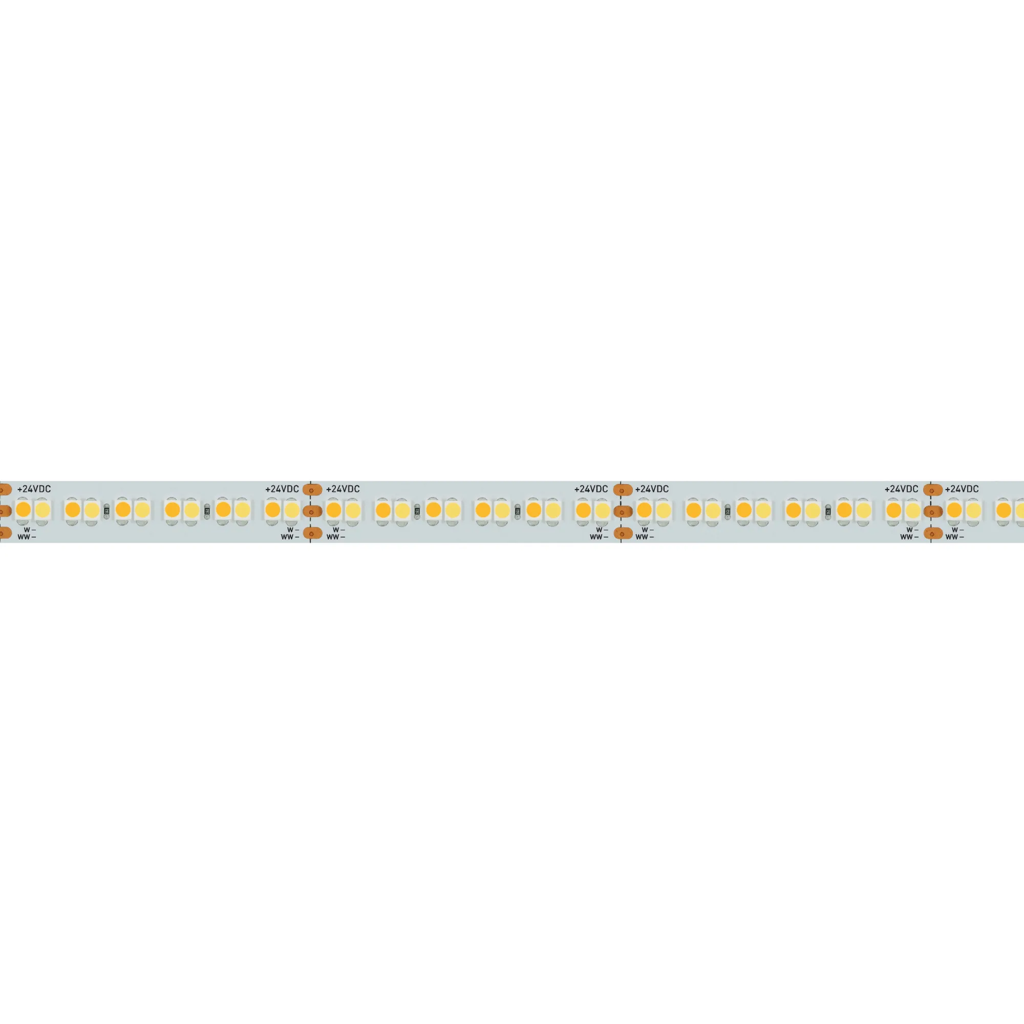 2-х канальная лента LUX с изменяемой цв.температурой, светодиоды smd 3528, 240шт/м (1200шт на 5м), белая плата 10мм, скотч 3М. Два цвета БЕЛЫЙ 6500K + ТЁПЛЫЙ 2700K. Угол 120°, цветопередача CRI>90. Питание 24V, мощность 19,2 Вт/м (96 Вт на 5м). Размеры 5000х10х1,8мм. Мин.отрезок 50мм, 12 светодиодов. Цена за 1м.