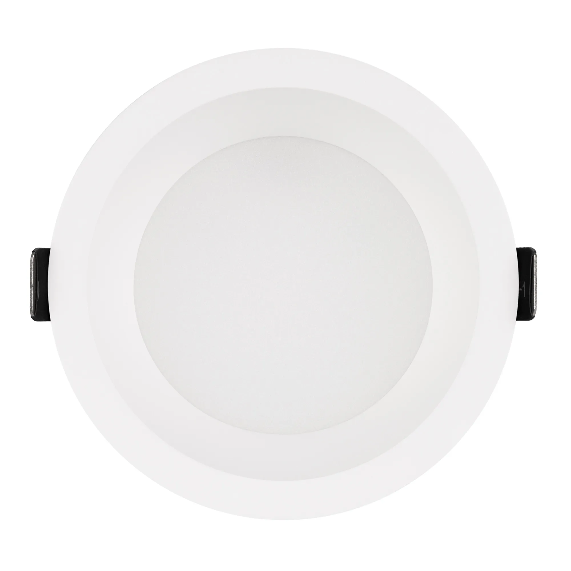 Встраиваемый светильник даунлайт. Мощность 24 Вт, св. поток 2080 лм, 87 лм/Вт, тёплый 3000 K, CRI>90, угол 90°, напряжение питания 230 В. Белый круглый корпус из алюминия, степень защиты IP54. Размер: диаметр 137 мм, высота 66 мм. Монтаж встраиваемый, установочное отверстие: диаметр 125 мм. Драйвер IP54, 27-45 В, 600 мА, пульсация <2%.