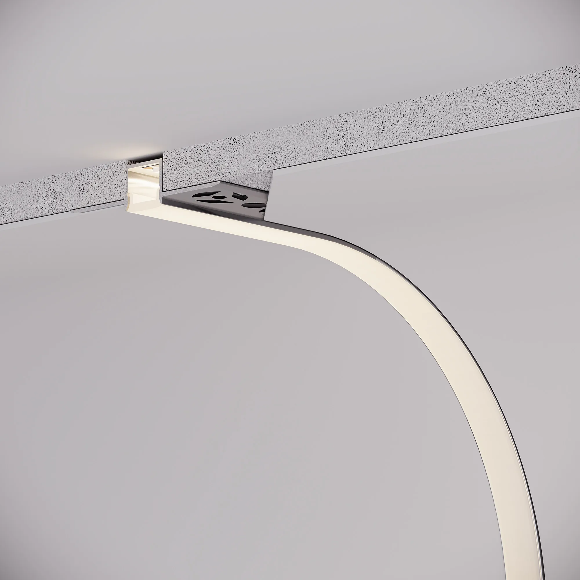 Алюминиевый встраиваемый гибкий профиль для светодиодных лент и линеек. Изгиб вверх/вниз. Габаритные размеры (L×W×H): 2000х52,8х11,8 мм. Ширина площадки для ленты 10,6 мм. Экраны, заглушки и другие аксессуары приобретаются отдельно. Цена за 1 метр.
