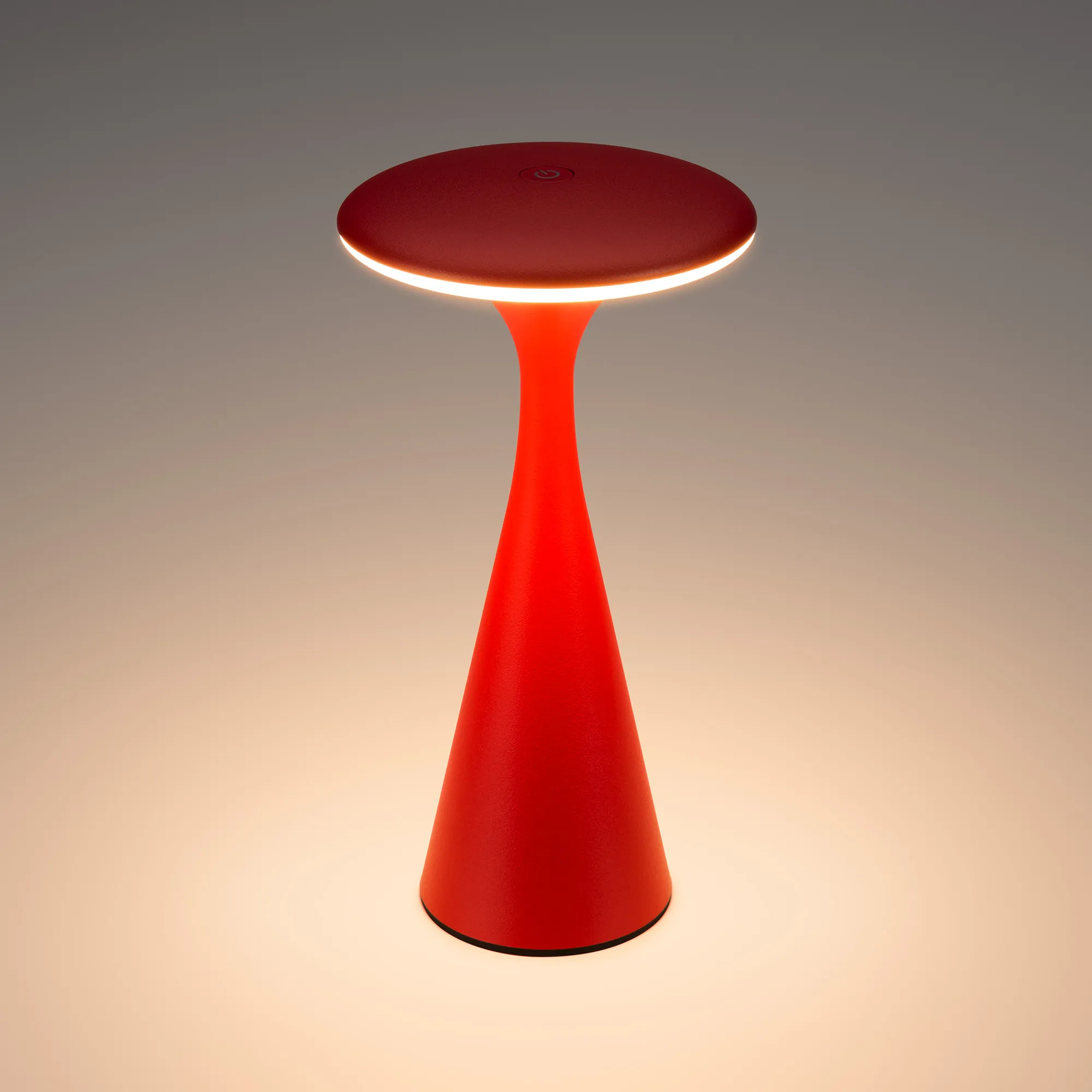 Настольный светильник со встроенным аккумулятором 1.5Вт, красный алюминиевый корпус. Цвет ТЕПЛЫЙ БЕЛЫЙ 2200-3000K, св.поток 110лм, CRI(Ra)>80, угол 123°. Размер Ф101x197мм. IP54. Зарядка от сети переменного тока AC220-240V. Тип встроенного аккумулятора 2600мАч Li-ion, напряжение батареи 3.7V