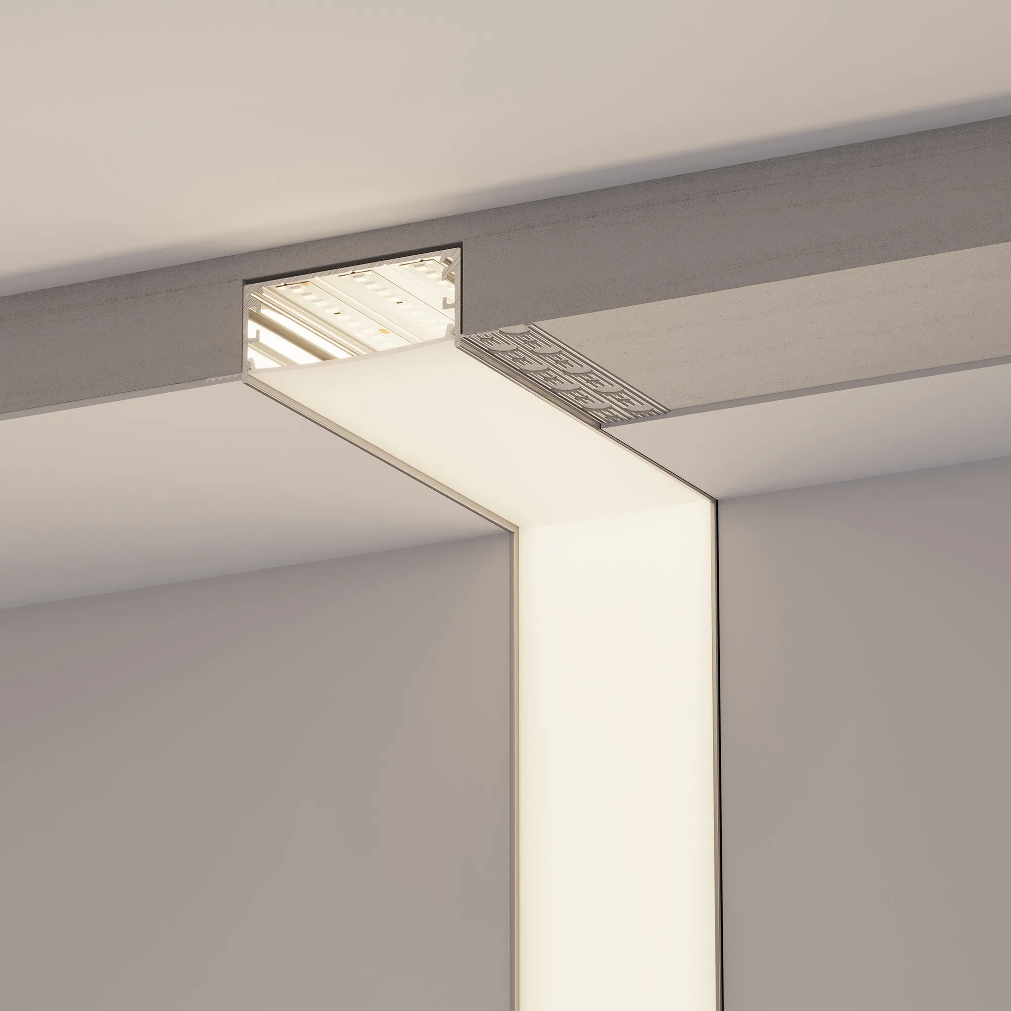 Алюминиевый анодированный профиль для встраивания в гипсокартон. Габаритные размеры (L×W×H): 3000x100x25,3 мм, паз для установки 60х22,5 мм. Ширина площадки для ленты - 50 мм. Экраны и заглушки приобретаются отдельно. Цена за 1 метр.