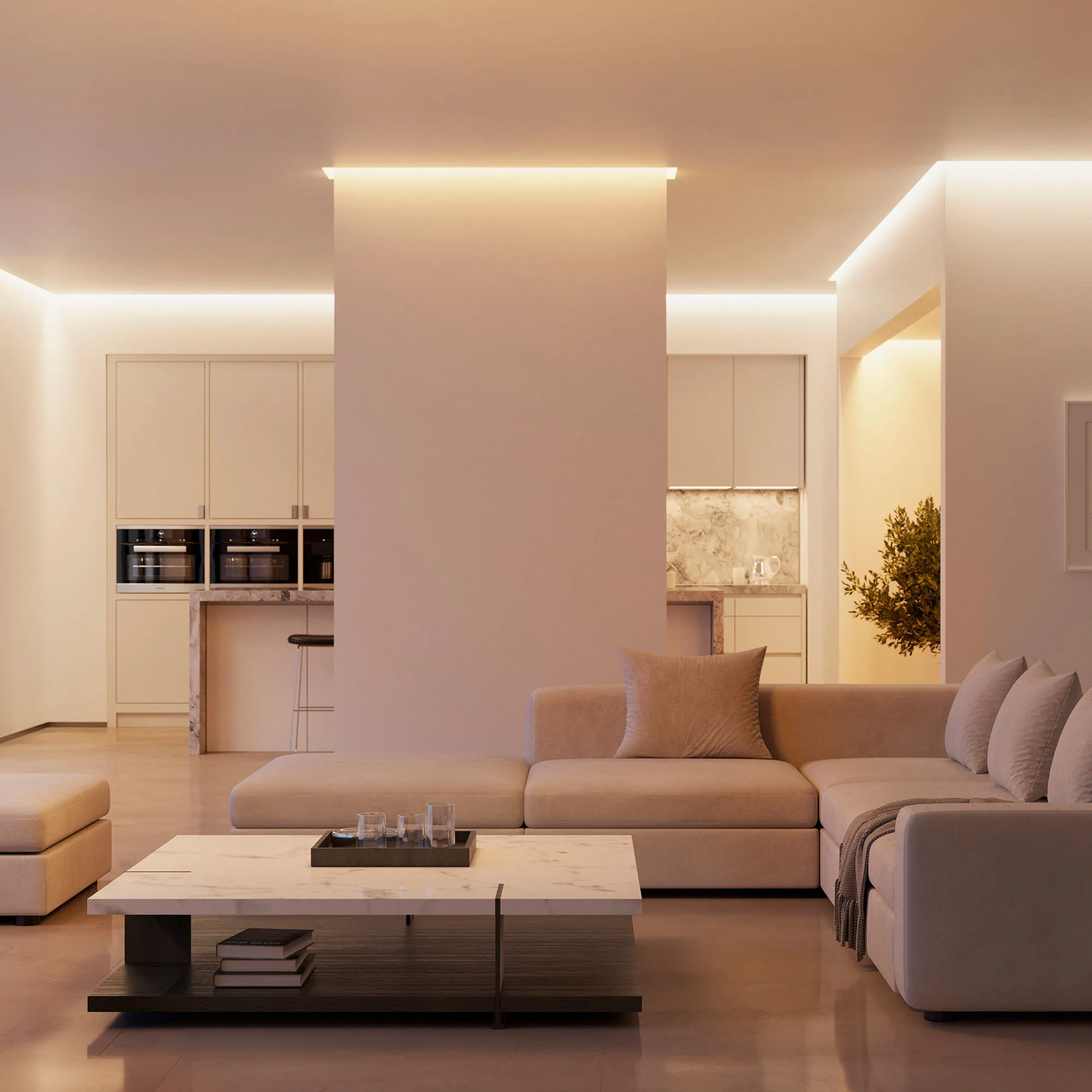 Алюминиевый анодированный встраиваемый профиль для светодиодных лент и линеек. Профиль для создания эффекта парящего потолка с мягким свечением по периметру помещения. Цвет- белый. Габаритные размеры (L×W×H): 3000х78,5х62,5 мм. Ширина площадки для ленты 20 мм. Ширина зазор между потолком и стеной - 39,2 мм. Экраны, заглушки и другие аксессуары приобретаются отдельно. Цена за 1 метр.