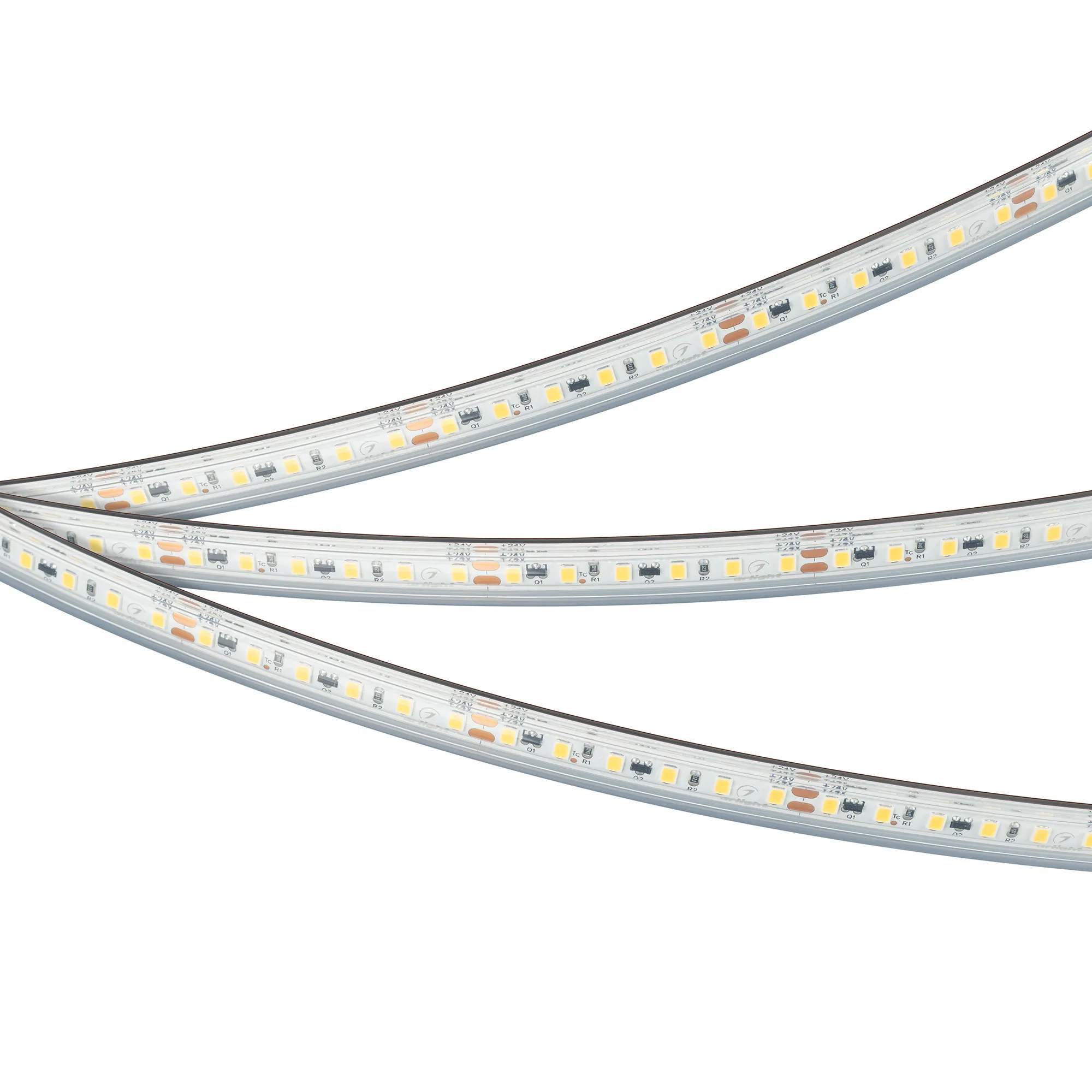 Стабилизированная светодиодная герметичная лента IC серии A120, IP67 (PS - силиконовая экструзия). Светодиоды SMD 2835, 120 шт/м, белая плата, шириной 8 мм, скотч 3M. Цвет ДНЕВНОЙ 4000 K, индекс цветопередачи CRI>80, угол 120°. Питание 24 В, мощность 9.6 Вт/м (96 Вт на 10 м). Размеры 10000x10x5 мм. Мин. отрезок 50 мм, 6 светодиодов. Цена за 1 м.