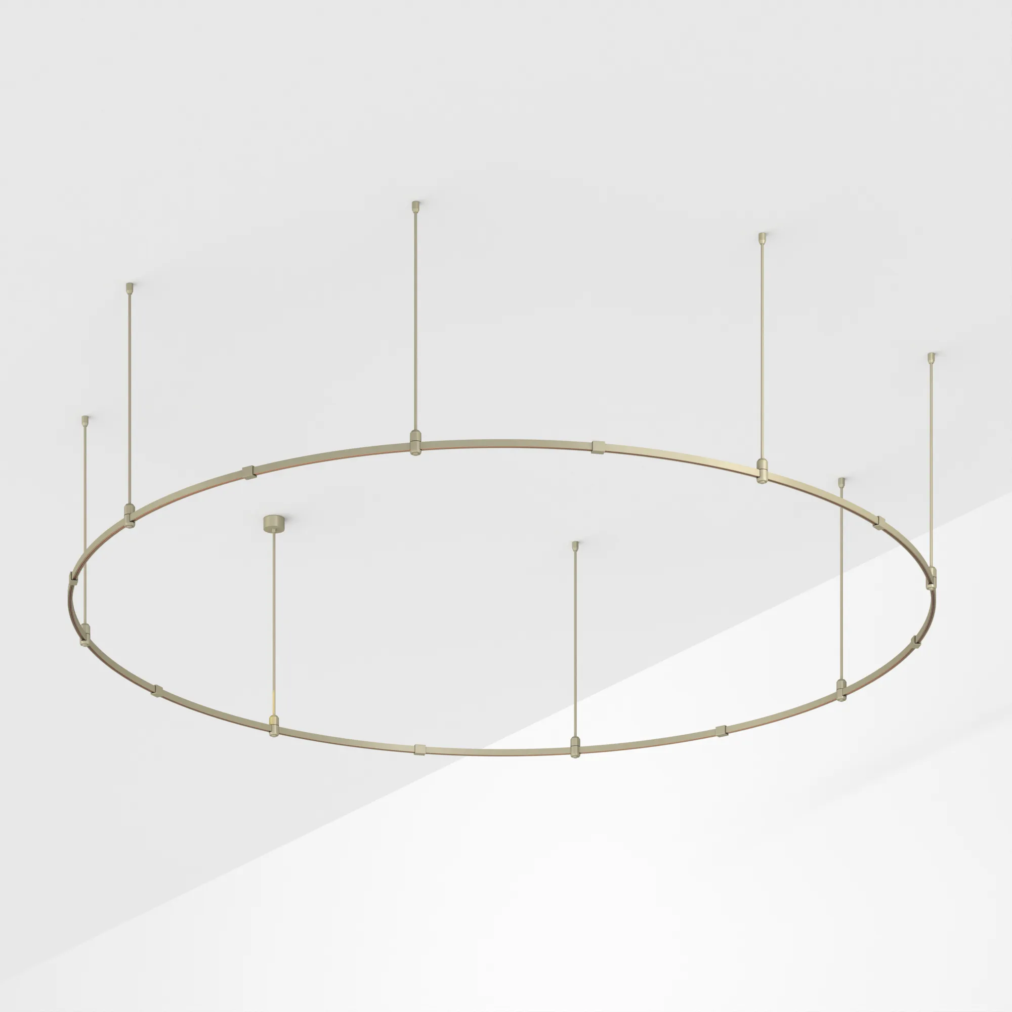 Подвесная конструкция APRIORI, форма круг. В комплекте треки с аксессуарами и жесткими подвесами длиной 800мм. DC48V. Материал алюминий, цвет серо-оливковый . Размер: диаметр 3000мм, высота 22мм. Светильники и источники питания приобретаются отдельно.
