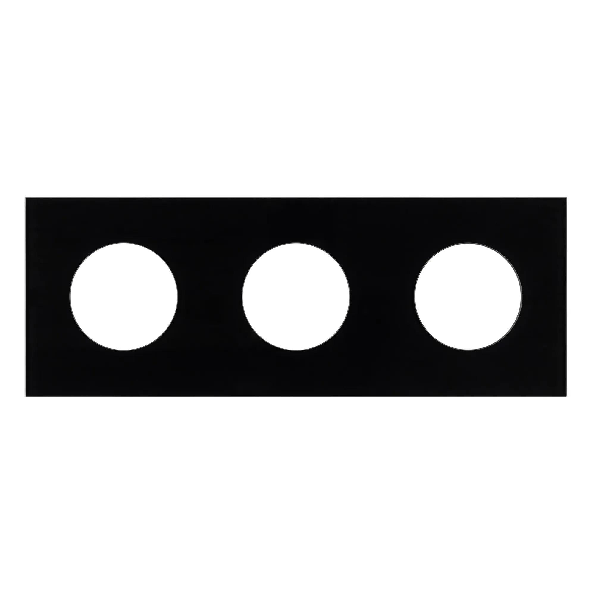 Рамка стеклянная на 3 поста, под встраиваемый механизм. Вырез под функциональную часть круг. Цвет - черный. Ориентации монтажа - горизонтальная.