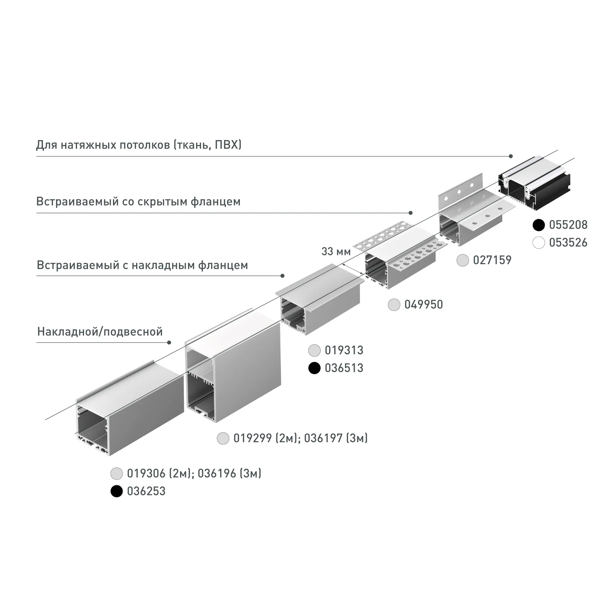 Алюминиевый профиль белого цвета для натяжных потолков (центральная линия). Решение 2-в-1 - каркас для крепления натяжного потолка и профиль для установки светодиодной ленты. Для дизайнерских решений «линии света» в натяжных потолках. Подходит для тканевых и ПВХ потолков. Монтируется к потолку накладным способом. Ширина площадки для ленты 31 мм. Длина 2000 мм. Цена за 1 м.