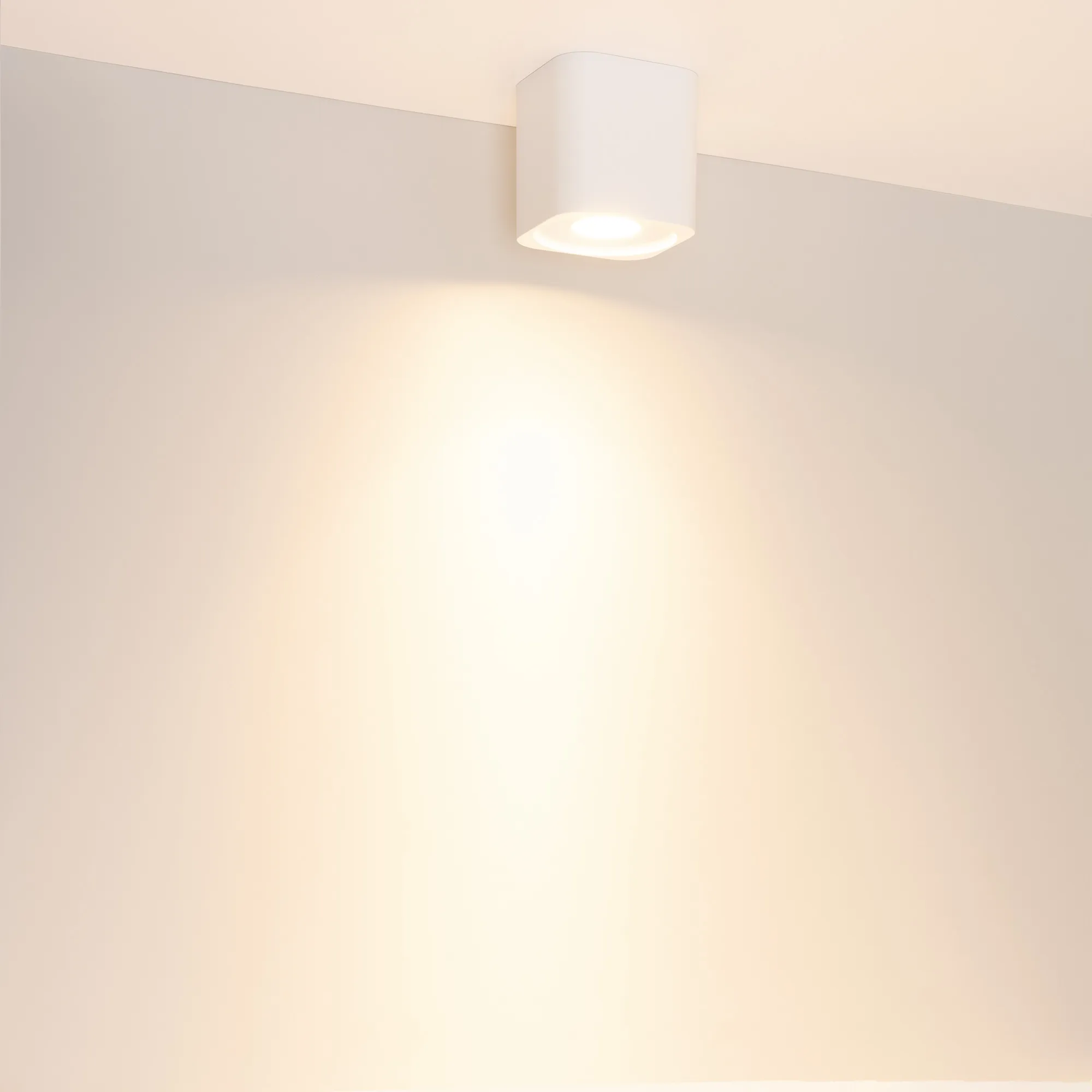 Накладной интерьерный светильник c регулируемым углом излучения. Мощность 10 Вт, св. поток 870-880 лм, 87 лм/Вт, тёплый 2700 K, CRI>90, угол 20°-45°, напряжение питания 230 В. Белый квадратный корпус, угол поворота светового модуля 60° (30°+30°), степень защиты IP20. Размер: длина 95 мм, ширина 95 мм, высота 98 мм. Монтаж накладной. Драйвер встроенный 27-48 В, 250 мА, пульсация < 0,3 %.