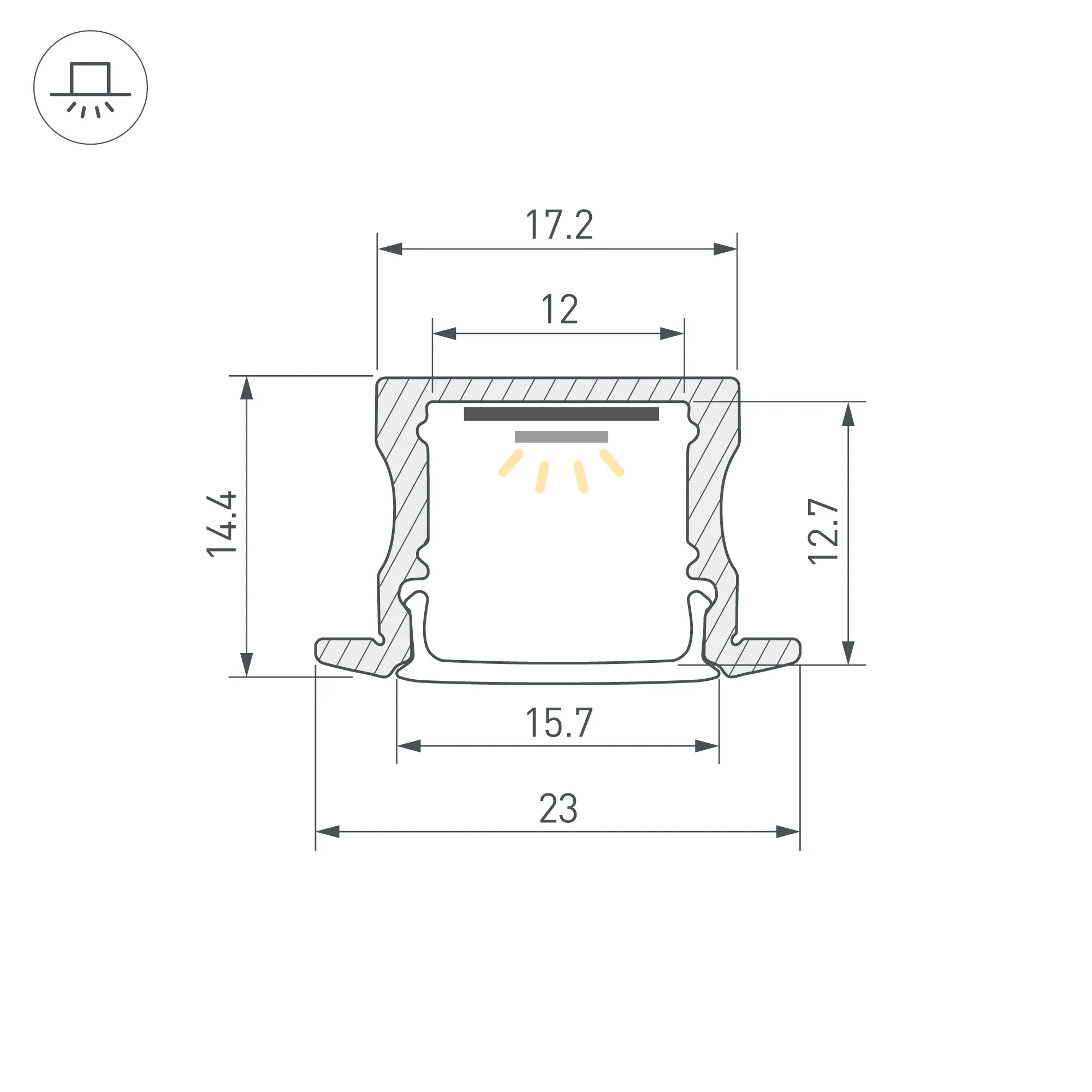 Алюминиевый встраиваемый профиль для светодиодных лент и линеек. Цвет - белый RAL9003 (порошковая окраска), покрытие - зернистое. Габаритные размеры (L×W×H): 2000x23x14,4 мм. Паз для установки 17 мм. Ширина площадки для ленты 12 мм. Экраны, заглушки и другие аксессуары приобретаются отдельно. Цена за 1 метр.