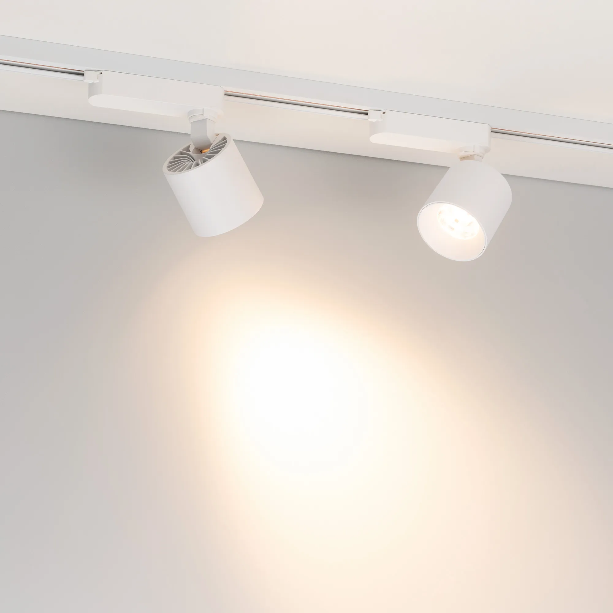 Светильник для однофазных треков, 16 Вт. Цвет свечения ТЁПЛЫЙ 3000K, световой поток 1550 лм, угол 50°, CRI>90. Корпус круглый, металл, цвет белый, IP20. Размеры Ø74x69,6 мм. Монтаж на трек 1-фазный. Входное напряжение AC220-240V, мощность 20 Вт. Драйвер встроенный (25-40V, 500 mA).Пульсация <1%.