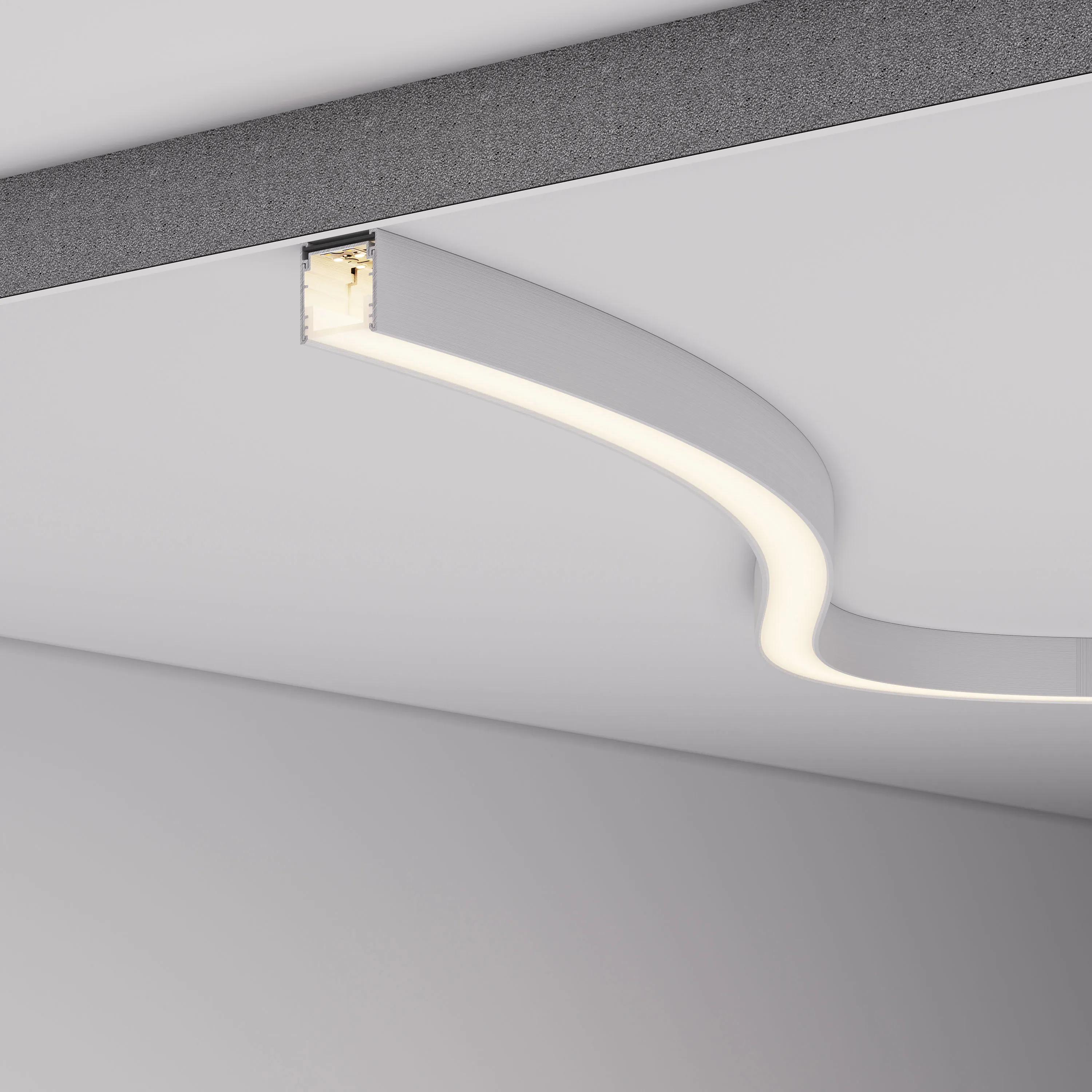 Трехкомпонентный алюминиевый анодированный гибкий профиль для светодиодных лент: внутренний профиль и две внешние стенки. Гнётся руками и держит форму. Габаритные размеры (L×W×H): 2000x34,5x35 мм. Ширина площадки для ленты 25 мм. Укомплектован черной эластичной лентой для защиты ленты от пыли и фильтрации светового потока. Экраны, заглушки и другие аксессуары приобретаются отдельно. Цена за 1 метр.