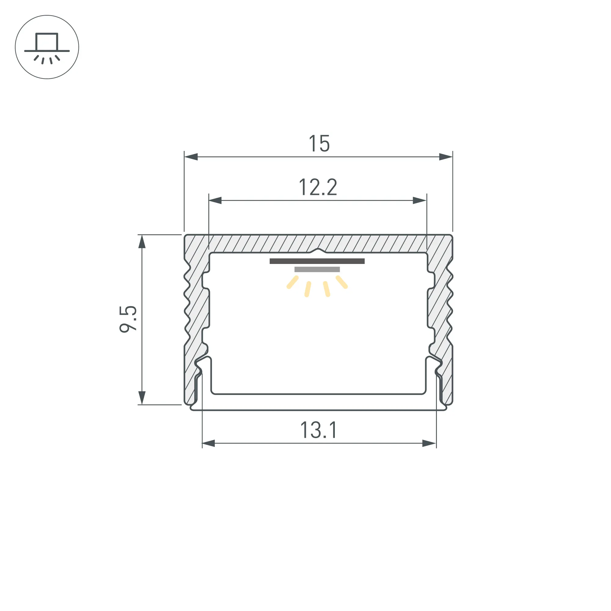 Алюминиевый профиль для светодиодных лент и линеек. Цвет - черный RAL9005 (порошковая окраска). Габаритные размеры (L×W×H): 2000x15x9,5 мм. Ширина площадки для ленты 12,2 мм. Экраны, заглушки и другие аксессуары приобретаются отдельно. Цена за 1 метр.