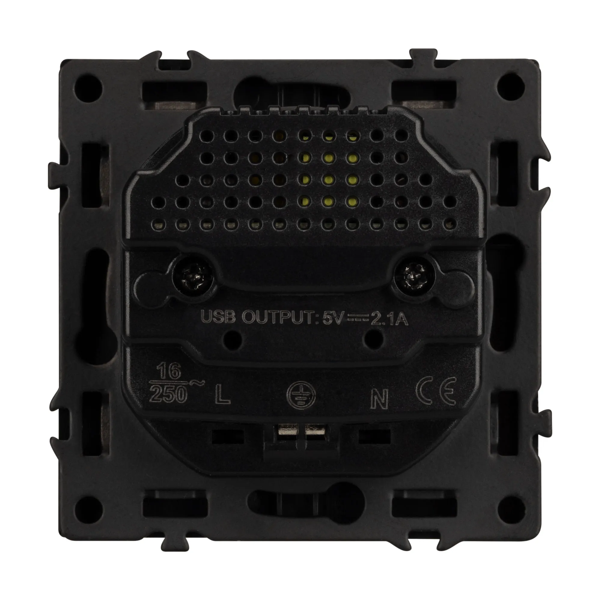 Механизм розетки с заземлением на 1 пост и 2USB Type A порта. Цвет - черный оникс, с Soft-Touch покрытием. Без фронтальной рамки. Уровень пылевлагозащиты IP20. Розетка устанавливается в стандартный подрозетник круглого сечения диаметром 60мм.